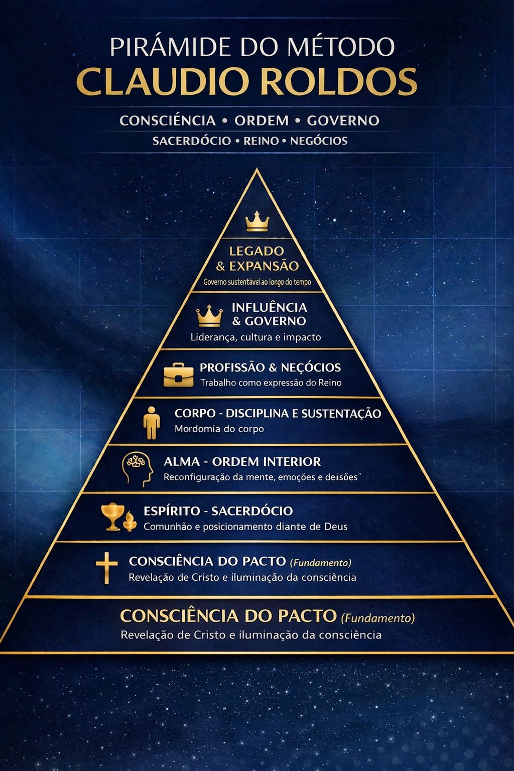 O Método não começa no dinheiro. Começa na consciência. Consciência ajusta a visão. Ordem organiza a vida. Governo sustenta decisões. E legado se constrói no tempo.